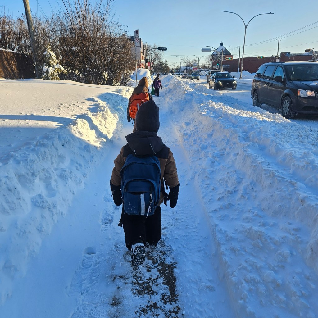 Il est 7h45 quand je sors avec eux, bravant le froid de février. Vers 8h45, les voilà au chaud au service de garde de l’école et moi sur le chemin du restaurant pour déjeuner.