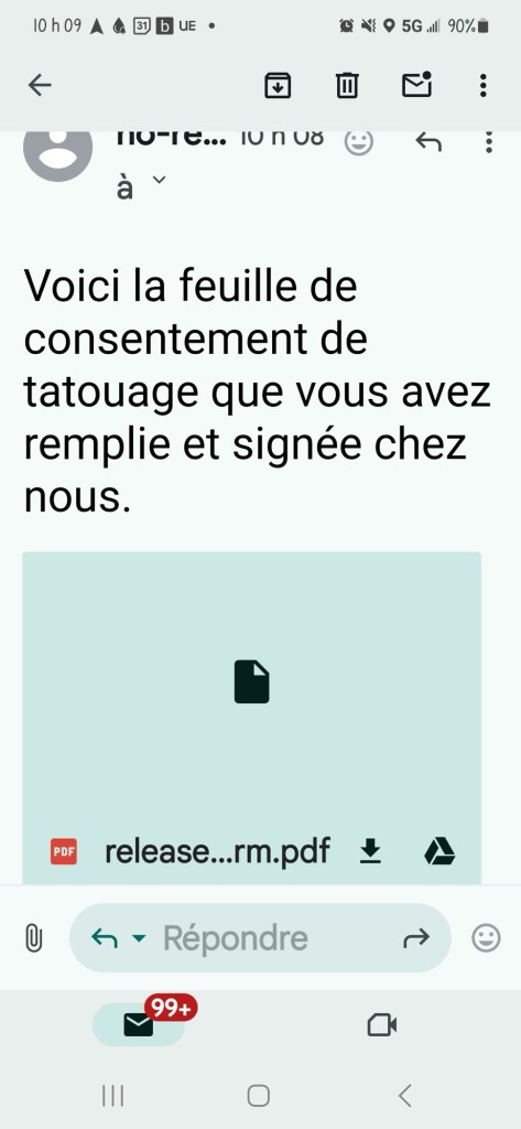 D’ailleurs, alors que mon artiste prépare sa station, on m’invite à remplir un formulaire de consentement à l’accueil. On m’y explique les règles d’hygiène, le fait qu’un tatouage est permanent et se on renseigne sur mon état de santé.